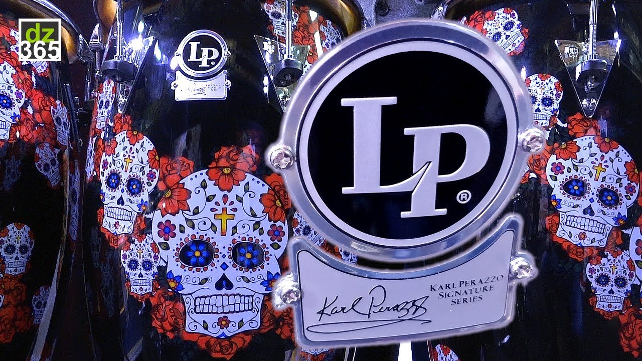 LP Karl Perazzo Signature Sugar Skull congas and bongos All the LP videos we recorded in Oxnard are hosted by Derek Zimmerman, LP's Brand Manager.